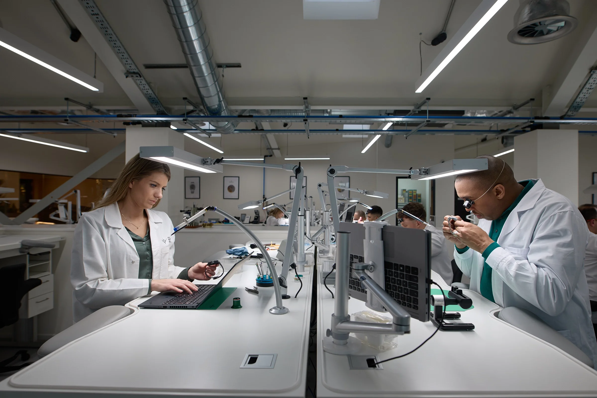 Each layer carried its own visual challenge. Watches demanded control and accuracy in how light interacted with reflective surfaces. The workshop required a more observational approach, allowing real moments of inspection and handling to lead the frame. The people required space to work naturally without turning the process into performance.